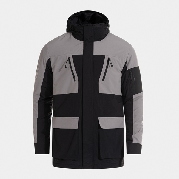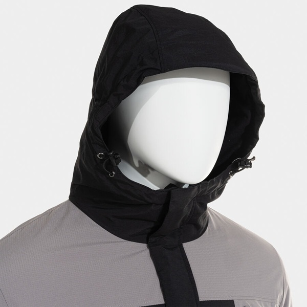Je navrhnutá so zapínaním na zips; vetruodolnou a vodeodolnou chlopňou s patentnými cvočkami; nastaviteľnou kapucňou s vnútornou flísovou podšívkou a šiltom; nastaviteľným elastickým lemom so zarážkami; a piatimi vonkajšími vreckami: dvoma spodnými vreckámi na zips, dvoma hornými vreckami so zapínaním na zips a pútkom na sťahovanie a jedným ďalším na rukáve.